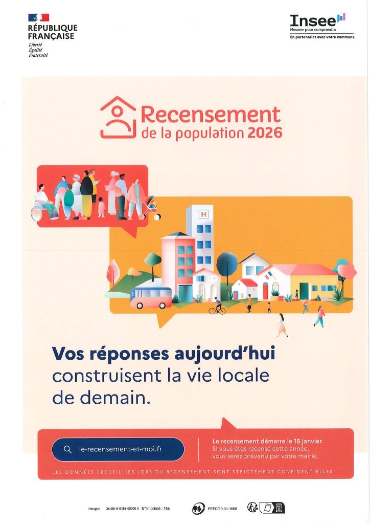 Le recensement de la commune aura lieu du 15 janvier au 14 février 2026.