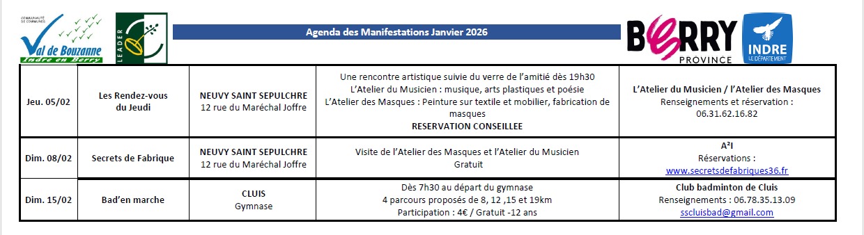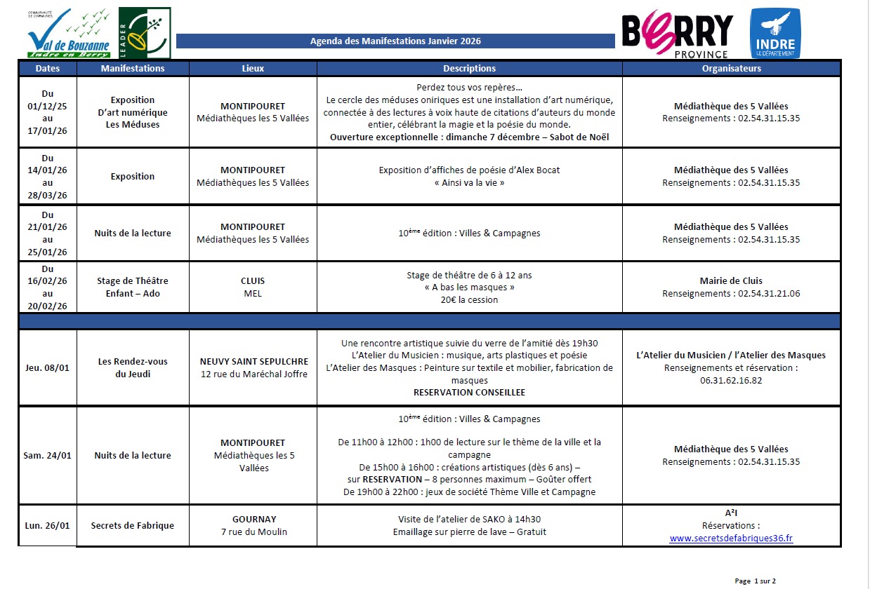 Agenda des manifestations en janvier 2026